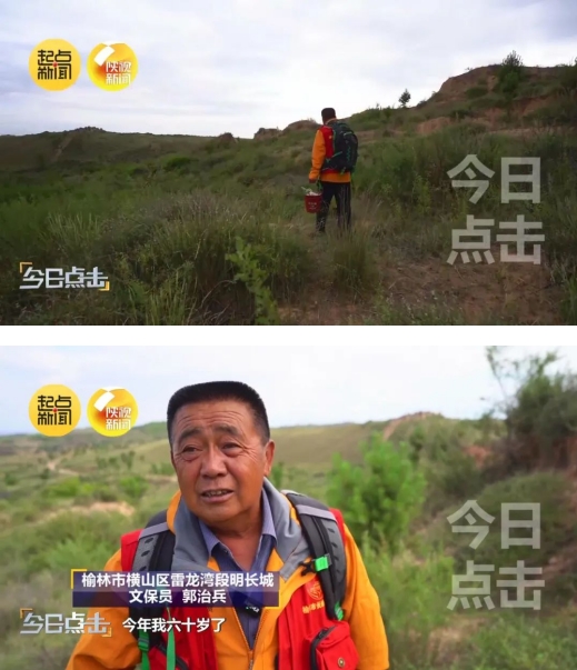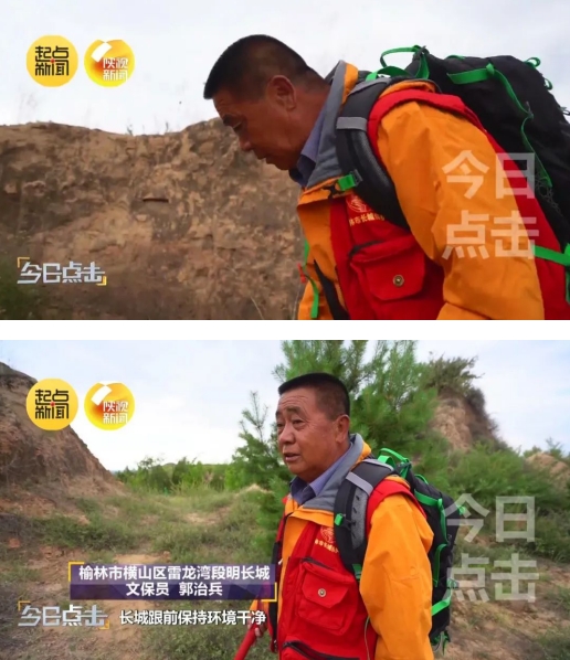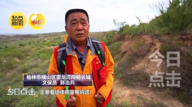 郭治兵是榆林市横山区雷龙湾段明长城的文保员。每个星期,他都要把自己守护的这一段8公里长的明长城巡查一遍。